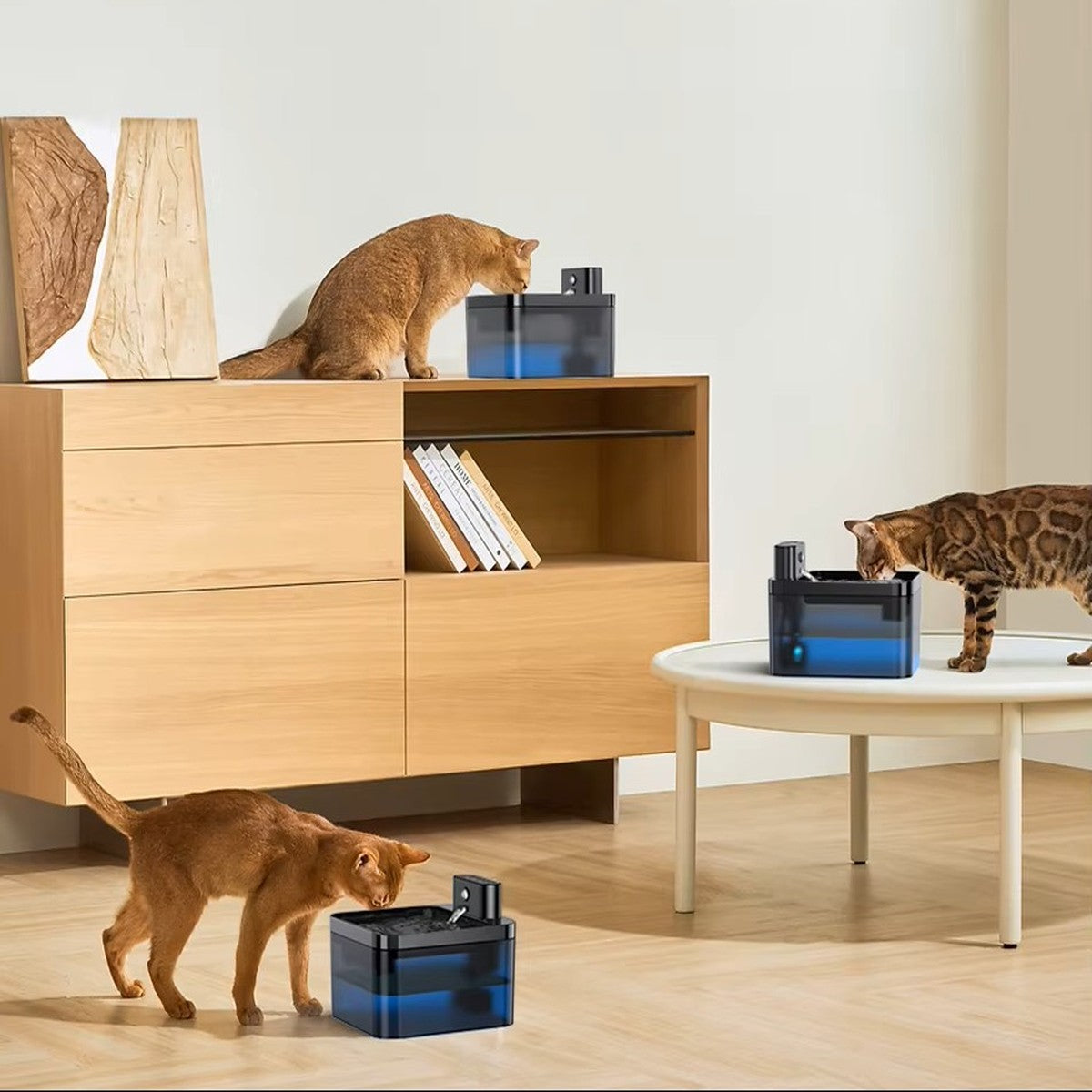 La fontaine fonctionne trÚs bien. Le premier, le chat est heureux de boire. Il a un capteur de mouvement, donc le NIV n'a pas besoin de continuer à marcher. Mon chat ne boit que de l'eau du robinet, donc cette fontaine aidera à économiser de l'eau.