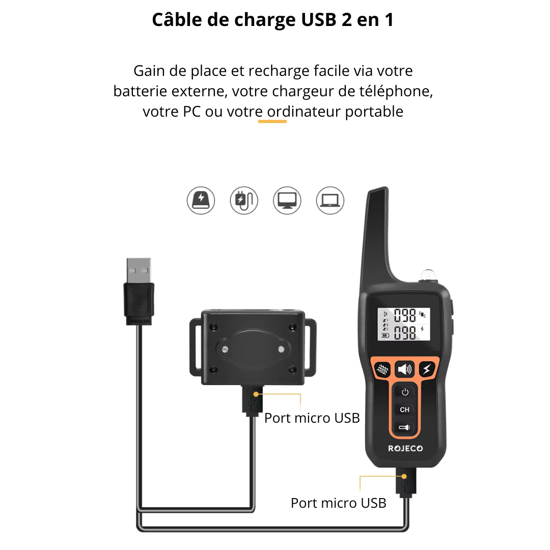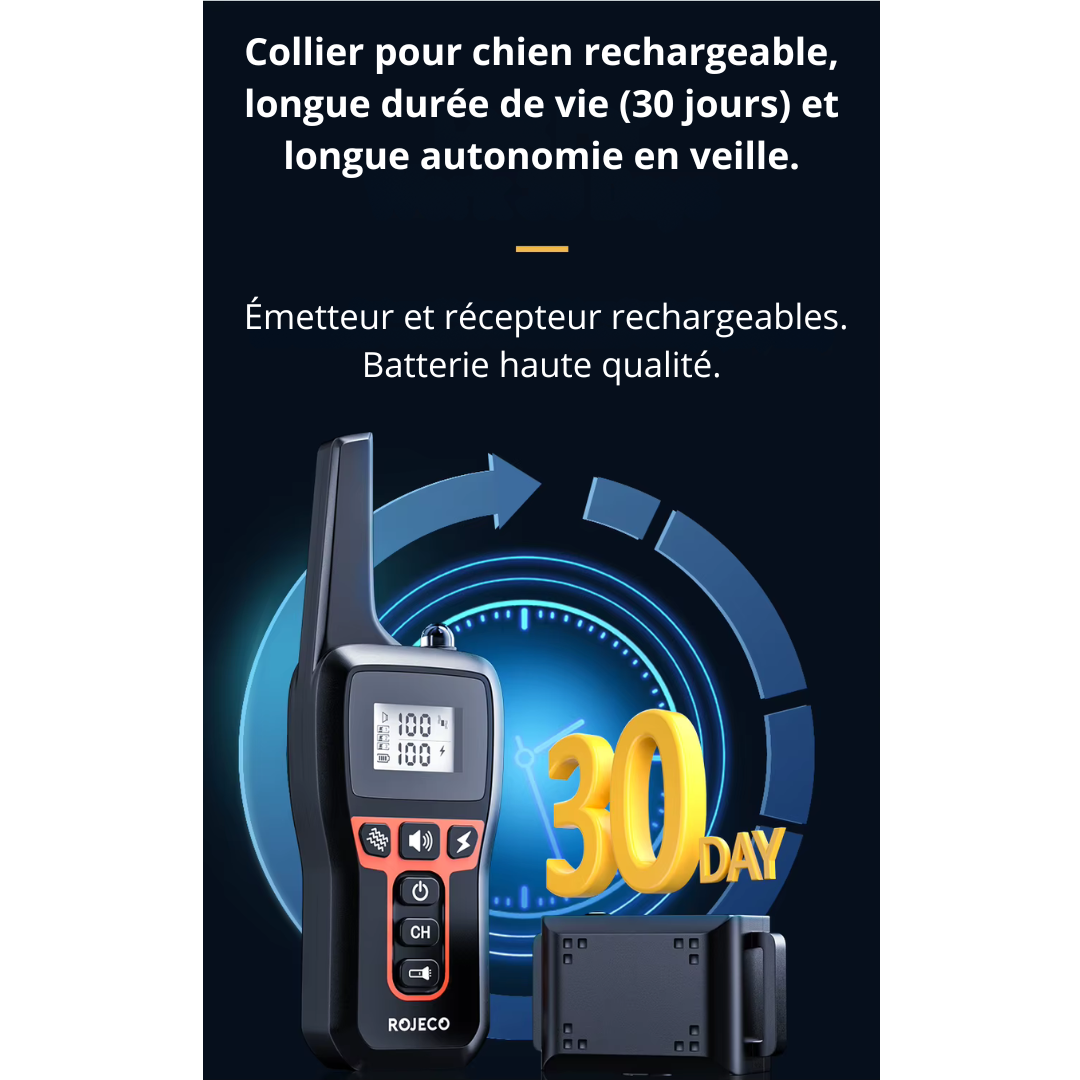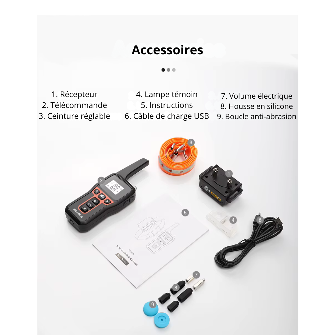🔁 Multi-chien — pilotez 2 colliers (selon pack) depuis une même télécommande.