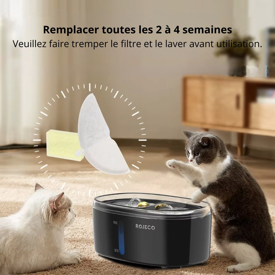 Filtres fontaine a eau filtration charbon + résine, double abreuvoir AquaLuxe